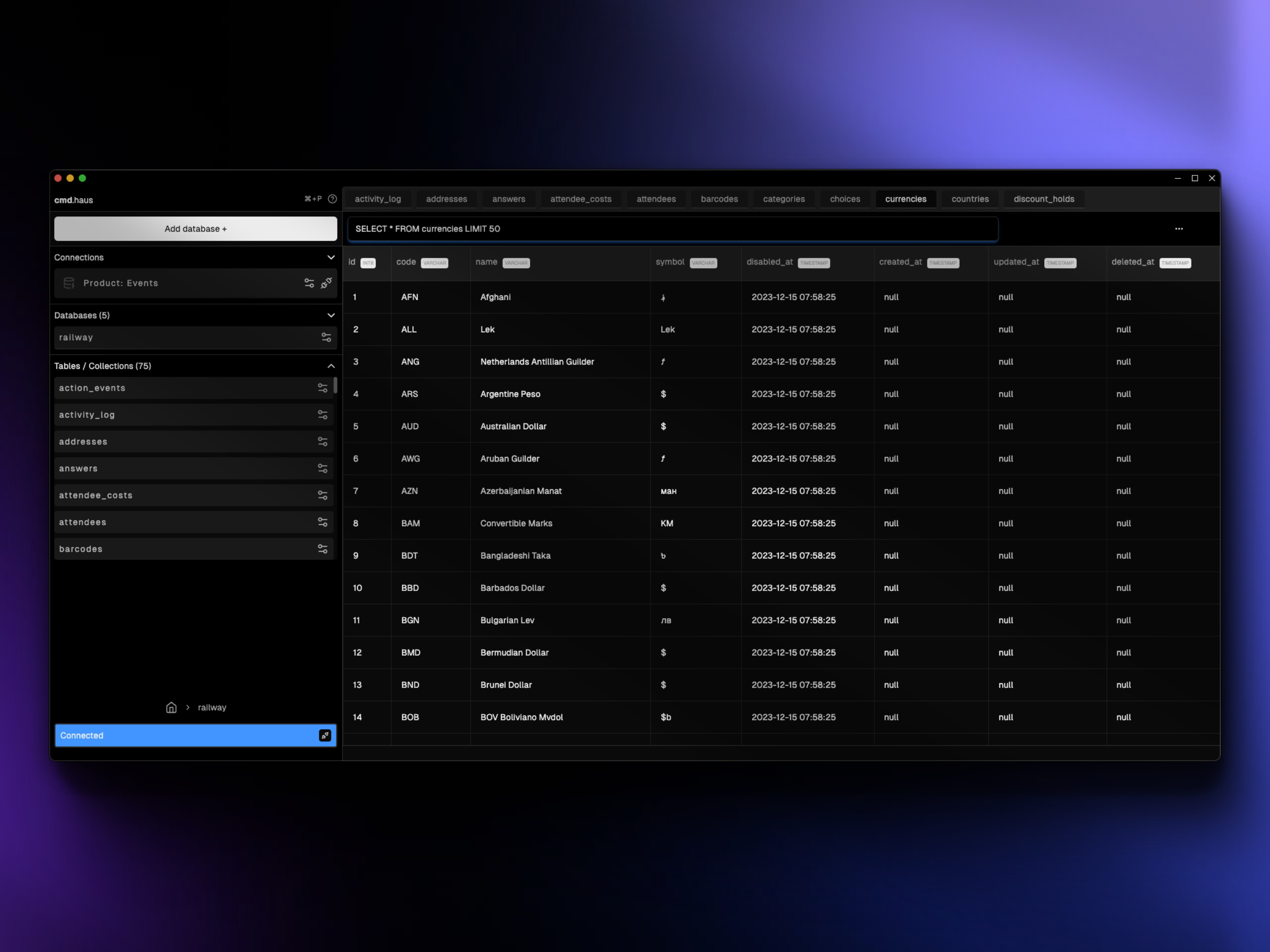 cmd.haus is a database management tool that operates entirely locally, ensuring no personal or user data is collected or stored.