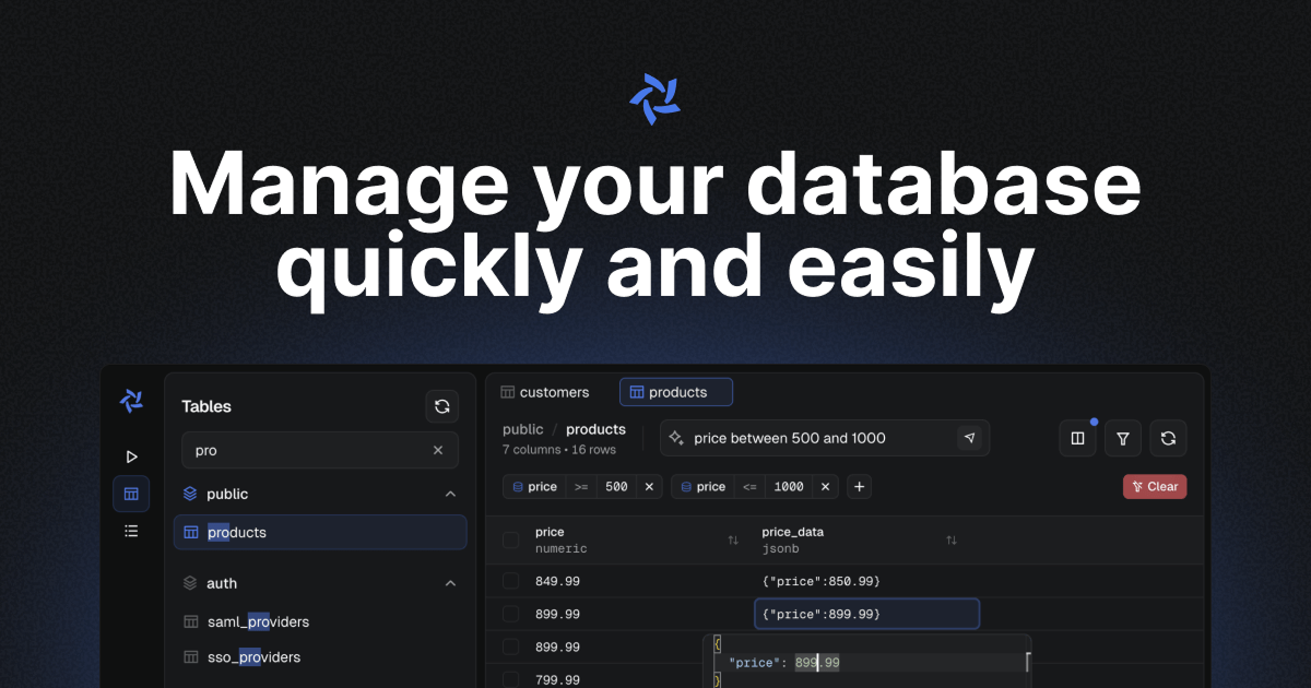 It offers modern features including AI-driven data filtering, natural language queries, and comprehensive CRUD operations, with all features currently available free during its beta phase. The tool emphasizes automation and ease of use, distinguishing itself from traditional alternatives like DBeaver and pgAdmin.