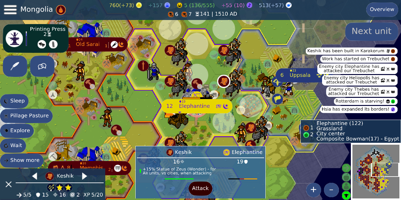 It replicates Civ V mechanics while using lightweight retro-style graphics and is available for Android, Windows, Linux, macOS, and Raspberry Pi through multiple distribution channels. The project has an active roadmap (polish, improved AI/automation, G&K and BNW mechanics) and accepts community contributions for code, translations, and mods.