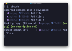 The `jj absorb` command automatically moves individual changes from your working directory to the most appropriate previous commits by matching line edits with their most recent modifications.